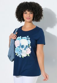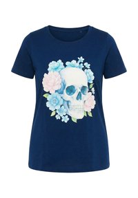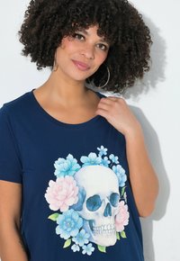 T-SHIRT, BEQUEME PASSFORM, FLORALER TOTENKOPF - T-Shirt print - dark blue