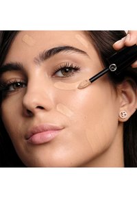 Concealer-Flasche mit schwarzem Deckel und Applikatorstab mit beiger Tagespflege, beschriftet mit "luminous silk perfect glow concealer" von Giorgio Armani.
