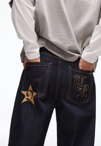 EMBROIDERED BARREL-LEG - Baggy Jeans - royal blue