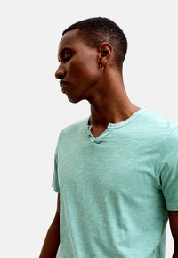 ESPLIT NECK - T-Shirt basic - türkis-meliert