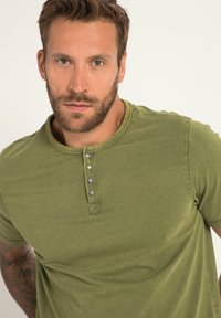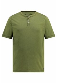 HENLEY, HALBARM, COOLDYED-LOOK, RUNDHALS - T-Shirt basic - dark green