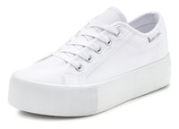 Schwarze Leinensneaker mit weißen Gummiplattformsohlen, runder Zehenpartie und grauen Schnürsenkeln. Enthält silberne Ösen und ein dezentes Logoetikett an der Seite.