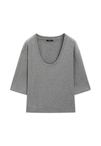 Weiter Ausschnitt. Shirt aus reiner Baumwolle. Lockerer und bequemer Schnitt, nicht am Körper anliegend. Halblange Ärmel.