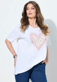 A-LINIE HERZ MIT 3D-BLÜTEN UND GLITZER HALBARM - T-Shirt print - snow white