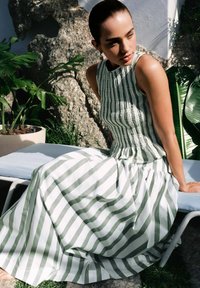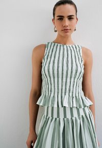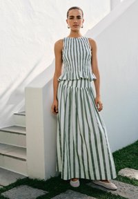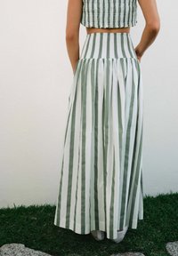 PETITE FIT - SHIRRED - Maxirock - sage green stripe