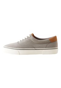 Hellblauer Canvas-Sneaker mit weißen Schnürsenkeln und Gummisohle, Seitenansicht zeigt das niedrig geschnittene Design und sichtbare Nähte.