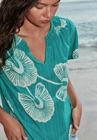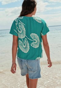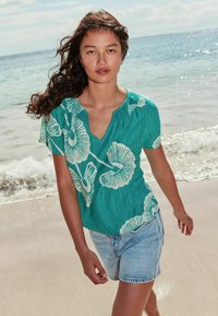 REGULAR FIT - SHORT SLEEVE NOTCH NECK SHIRRED BUBBLE - Bluse - green palm print