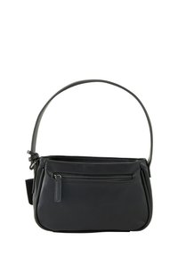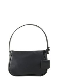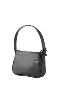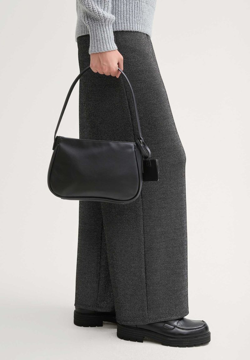 TTBENA Schultertasche aus glattem Lederimitat und feiner Logo-Prägung auf dem Taschenanhänger. Mit Reißverschlussöffnung, einem Reißverschlussfach hinten, einem Reißverschlussfach innen, einem Smartphone-Fach, einem flachen Henkel und einem abnehmbaren Anhänger mit Überschlag und Druckknopf unter dem Umschlag.