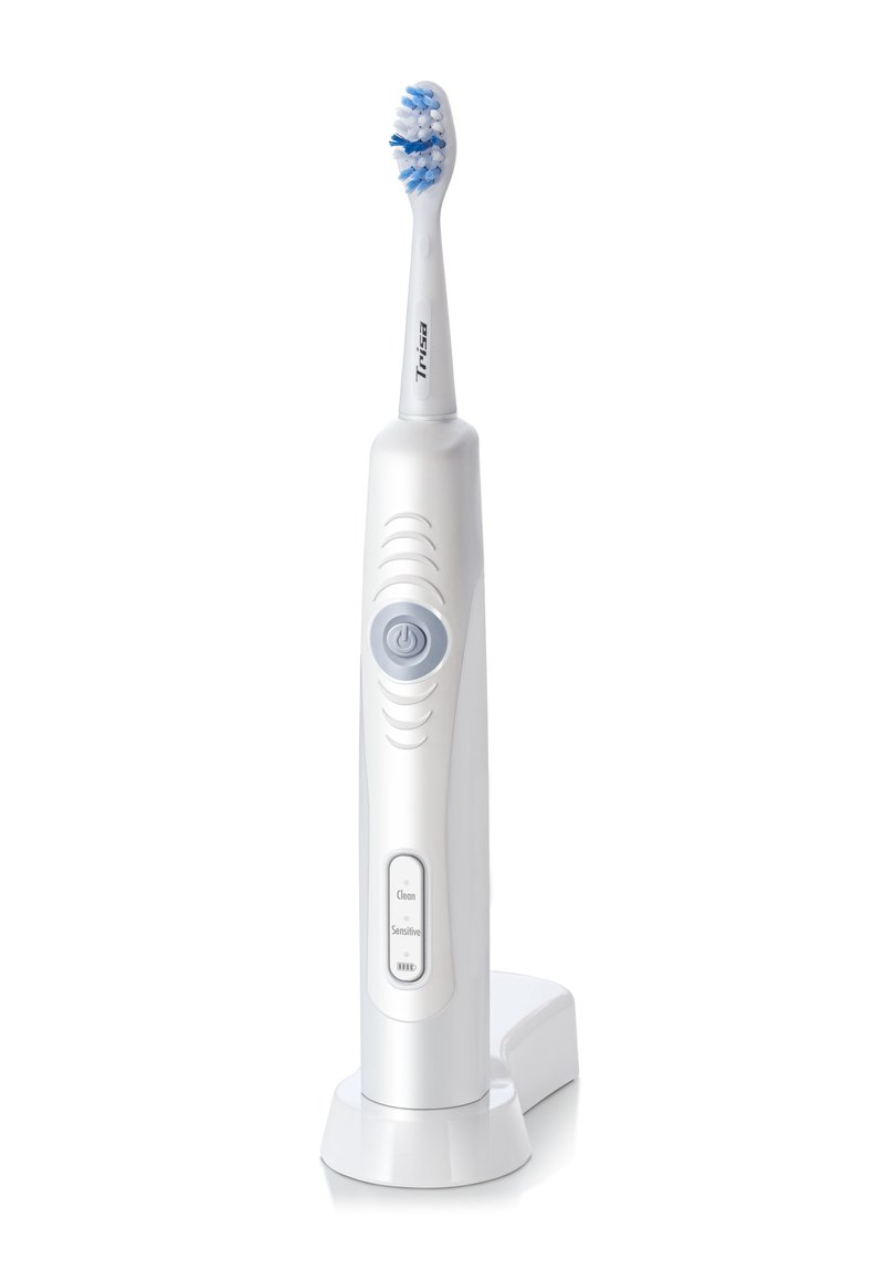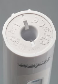 Aufsteckbürste auf das Handstück stecken, Zahnpasta auftragen, Bürste im Mund einschalten und passenden Modus wählen. Nach 30 Sekunden erinnert ein kurzer Stopp an den Wechsel der Zahnregion, nach 2 Minuten signalisiert ein längerer Stopp das Ende der Reinigung.
