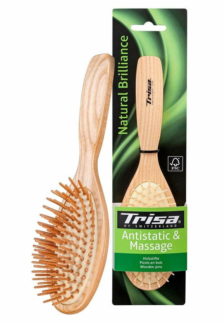 Die Haarbürste aus FSC zertifiziertem Schweizer Eschenholz eignet sich für das Auskämmen und Entwirren der Haare. Die abgerundeten Holzpins massieren die Kopfhaut angenehm und verhindern das statische Aufladen der Haare.
