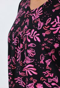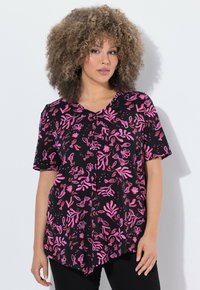 T-SHIRT, BLÜTEN, ZIPFELSAUM, V-AUSSCHNITT, HALBARM - T-Shirt print - black