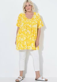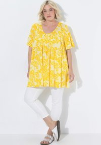 T-SHIRT, ZIERFALTEN, A-LINIE, CARRÉ-AUSSCHNITT, HALBARM - T-Shirt print - lemon yellow