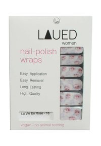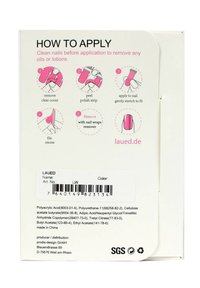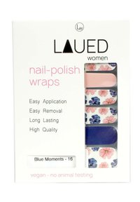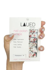 Die veganen Nagelfolien LAUED sind eine einfache und innovative Alternative oder Ergänzung zum herkömmlichen Nagellack. Sie halten auf Natur- sowie lackierten -, Acryl-, Gel- und Shellac-Nägeln. Das Produkt beinhaltet 16 äußerst dünne, selbstklebende Folien. Diese sind hygienisch in einem versiegelten Vakuumbeutel verpackt. Die Folien sind frei beweglich an einem Silberstreifen angebracht, so dass die Passform des Nagelbetts ganz einfach einzeln ausgewählt werden kann. Sie sind selbstklebend und können direkt auf die Nägel geklebt werden. Die Folien können ohne grosse Rückstände entfernt werden und lösen keine Allergien aus.